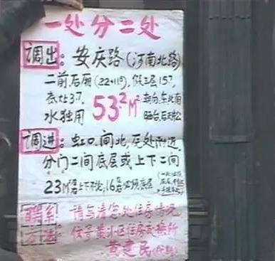 当时淡水路、大世界、昆山花园、彭浦新村房管所等民间自发的“换房集中点”,电线杆上贴满了手写的广告,有人弄块硬纸板把信息挂在胸前。没有电话手机的年代,大家都非常守约,台风天也去看房。