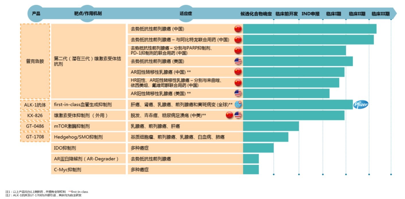 「开拓药业」产品研发管线主要聚焦前列腺癌、乳腺癌、肝癌为主的肿瘤治疗领域
