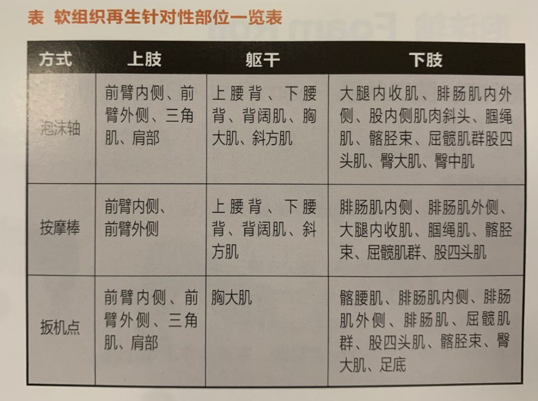 比如在北京体育大学的《身体功能训练动作手册》中,提到「软组织再生」的革新理解,主要体现在,训练前的软组织唤醒、激活和训练后的梳理、放松。