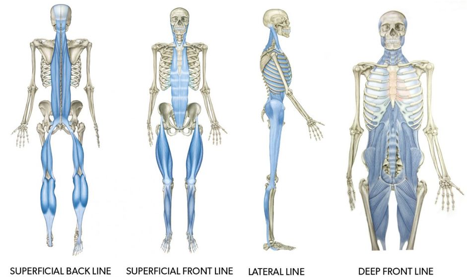 随着近年来筋膜研究的学术期刊逐渐增多,首先出现的,是有关筋膜应用的不同学派。比如,《解剖列车》作者Tomas. W Myers所主张的把肌肉比喻成「火车」,它在不同的骨关节就是一个停靠的车站,而解剖列车可看作一整条肌筋膜线,基于此Tomas. W Myers提出了后表线、前表线、体侧线的概念。