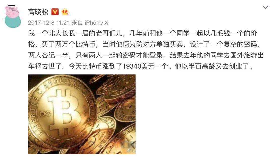 友情提示,钱包安全的核心在于『私钥』。只要有私钥,就能够打开你的钱包;私钥一旦丢失,永远无法找回,相当于你永远丢了这笔钱。此前高晓松就曾发过一条微博调侃私钥丢失情况: