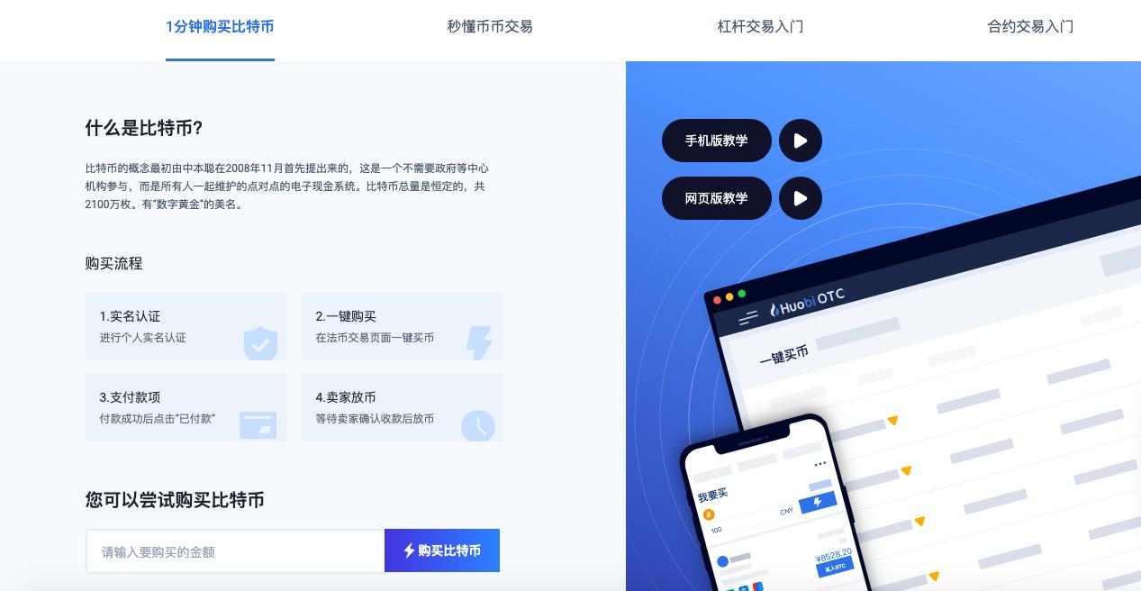 进入交易所网站之后,各家会有专门的买币操作指南,例如火币有「新手营」、OKEx有着《新手大讲堂》https://mp.weixin.qq.com/s/E5Rzkf3siCc_CLN0D3z_vg。