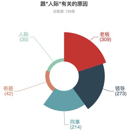 如果说,工资少加班多是90后离职最主要的原因的话,那么人际关系应该是压死骆驼的最后一根稻草。在人际关系中,老板、领导、同事是大家一直吐槽的对象,甚至使用了“奇葩”来形容。我们把跟老板、领导、同事有关的辞职留言选了出来,并且制作成了词云图: