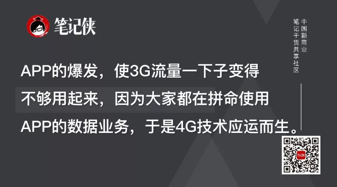 APP这一伟大发明的爆发,使得3G流量一下子变得不够用起来,因为大家都在拼命使用APP的数据业务,于是4G技术应运而生。某种意义上,4G是3G的承接。