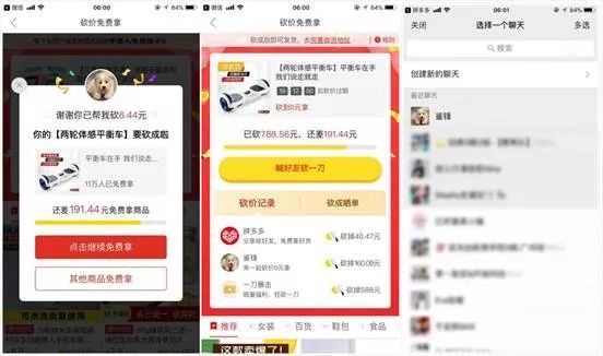 2.好友A打开拼多多,弹窗告诉好友A砍价成功了,你是否需要免费拿这个商品、还是去免费拿别的商品(在自己的App里,想怎么诱导怎么诱导)。