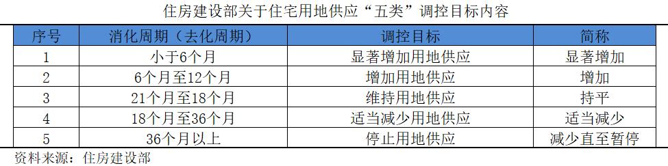 土地供应方面,住房建设部关于住宅用地供应“五类”调控管理目标,直接把土地出让收入与去化周期挂钩,也就是与人口挂钩,具体阐明了因城施策的内涵。