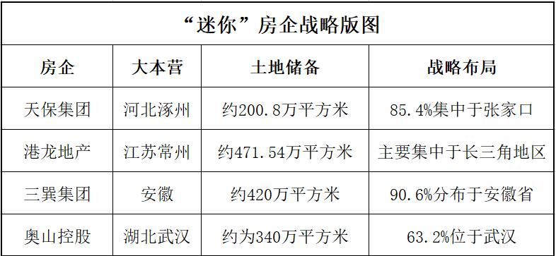 小到土储不足500万平方米,不足头部开放商几个大盘的体量;偏安一隅,重度依赖大本营是他们共同的特点。