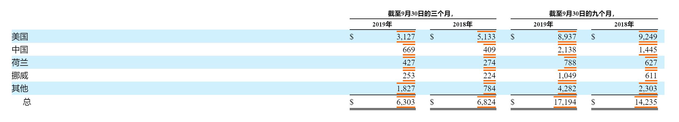 SEC文件显示,第三季度特斯拉销售额比较高的国家分别为美国(31.27亿)、中国(6.69亿)、荷兰(4.27亿)、挪威(2.53亿),四个国家总销售额为44.76亿美元,占特斯拉全球销售额71%。除以上四个主要市场外,特斯拉在“其他”市场的销售总额也从去年同期的7.84亿美元上升到18.27亿美元。
