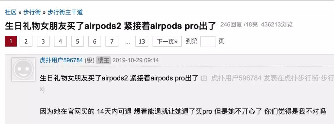 还有人更绝,女朋友刚送他一部AirPods2当作生日礼物,最新的Pro就突袭发售。