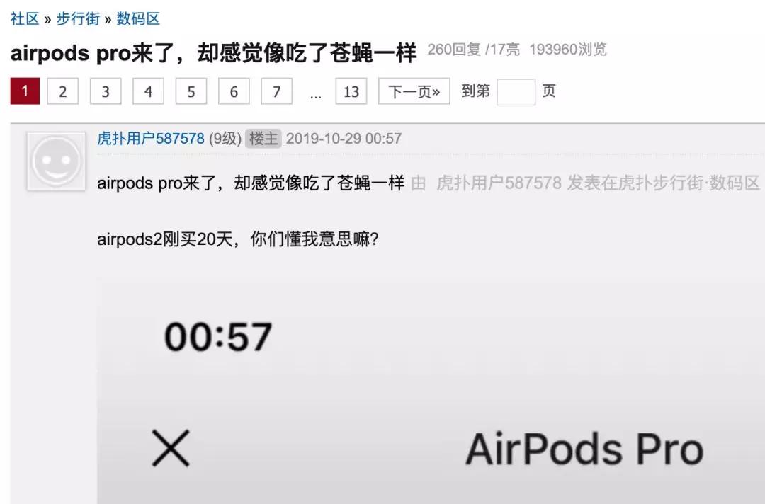 但更多的声音则是哀鸿遍野,有人刚买了AirPods2,发帖说这感觉就像吃了苍蝇一样难受: