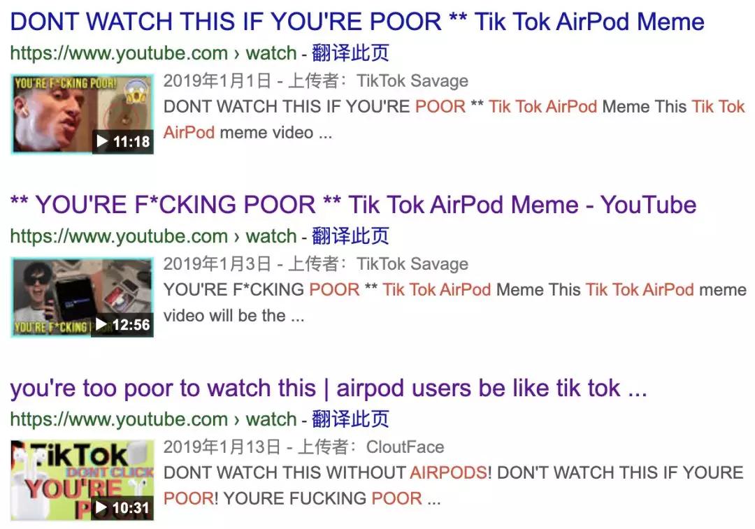 在TikTok上,AirPods更是成为了“阶 级的武器”,抡向了没有AirPods的人们,甚至在TikTok上出现了一系列新的与AirPods有关的恶搞视频。