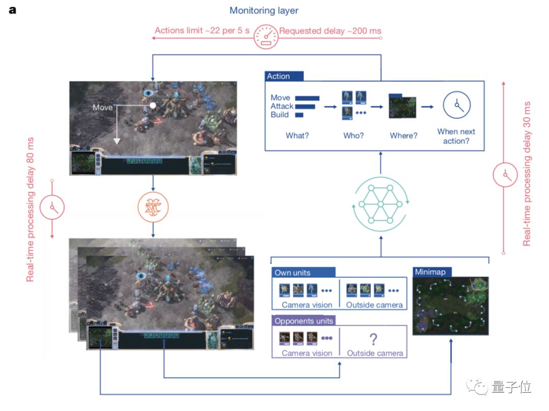 AlphaStar会通过概览地图和单位列表观察游戏。