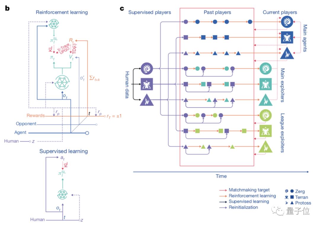 三是联赛训练完全是自动的,是从监督学习的智能体开始训练的,不是从已经强化学习过的智能体开始的。