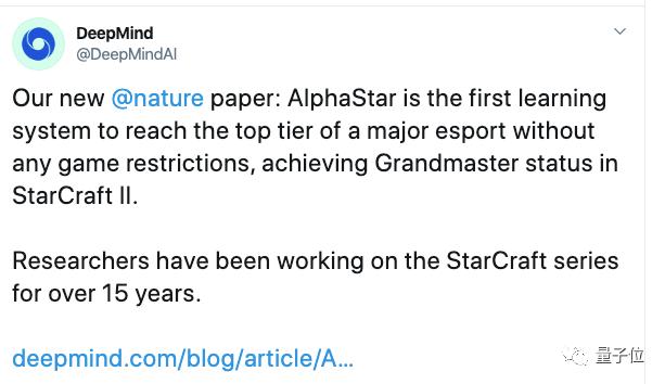 DeepMind在Twitter中表示,AlphaStar能够取得当前的成绩,研究人员已经在《星际争霸》系列游戏上工作了15年。