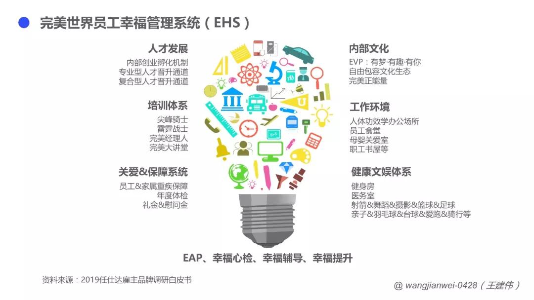 正如完美世界推出的符合“快乐完美”组织文化氛围、颇具个性特质、以“有你才完美”为宣传口号、以“有梦·有趣·有你”(Dream·Interesting·You,简称DIY)为核心理念的完美世界员工幸福管理系统。完美世界定位于从事让人感到幸福的产业,首先要使得从事这个产业的人感受到幸福。