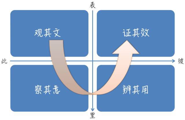 在以上四步中,第一到第二步是“由表及里”的过程,要求用心、求得“真知”(通“常”);第二到第三步是“由此及彼”的过程,要求灵活,善于“权变”;第三到第四步是从理论到实践,是“去粗取精”、“去伪存真”的过程。