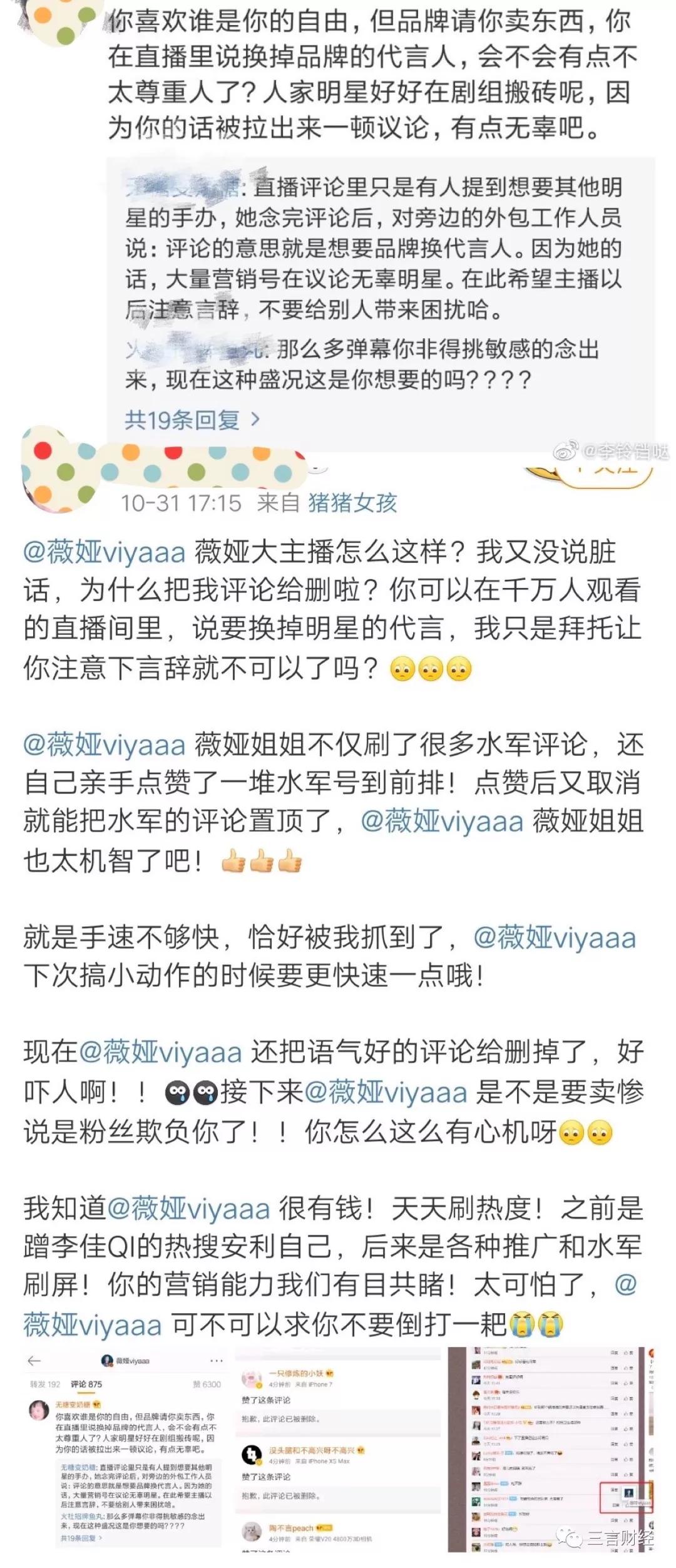 有网友称自己的评论被删,而且薇娅存在故意点赞水军评论再取消使之排名靠前等行为。