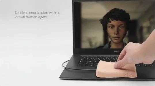 在笔记本电脑触摸板的人造皮肤演示中,当实验人员“捏”它时,电脑屏幕上的“虚拟人”会像真人一样皱眉,宛如感受到了疼痛。
