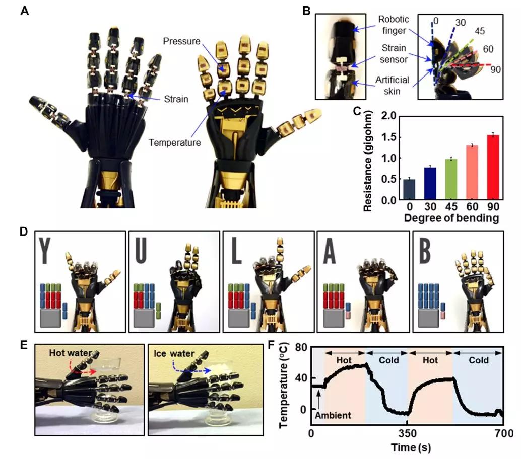 2017年9月,美国休斯顿大学的一组研究人员在《科学进展(ScienceAdvances)》杂志上发表了一篇论文,称可利用人造皮肤让机器人手感知冷热之间的差异。