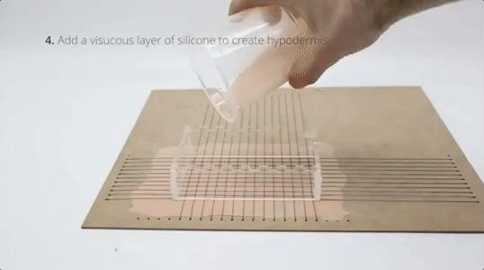 此种人造皮肤由多层有机硅膜组成,以模仿人类皮肤中存在的层。它由“真皮层”,电极层和“皮下层”组成,中间的电极层是由众多极细电线交叠组成的传感器。因此,它能够拥有人类皮肤的触感,能够“感觉”到用户的抓握力,并且可以检测到挠痒、爱抚,甚至捏和扭曲之类的交互动作。