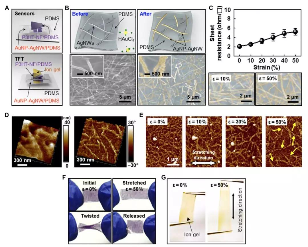 该团队创建的人造皮肤是一种可拉伸的复合半导体,是通过一种称为聚二甲基硅氧烷(PDMS)的橡胶复合材料和具有保护涂层的银纳米线制备的,该溶液可以硬化为一种使用纳米线传输电流的材料。