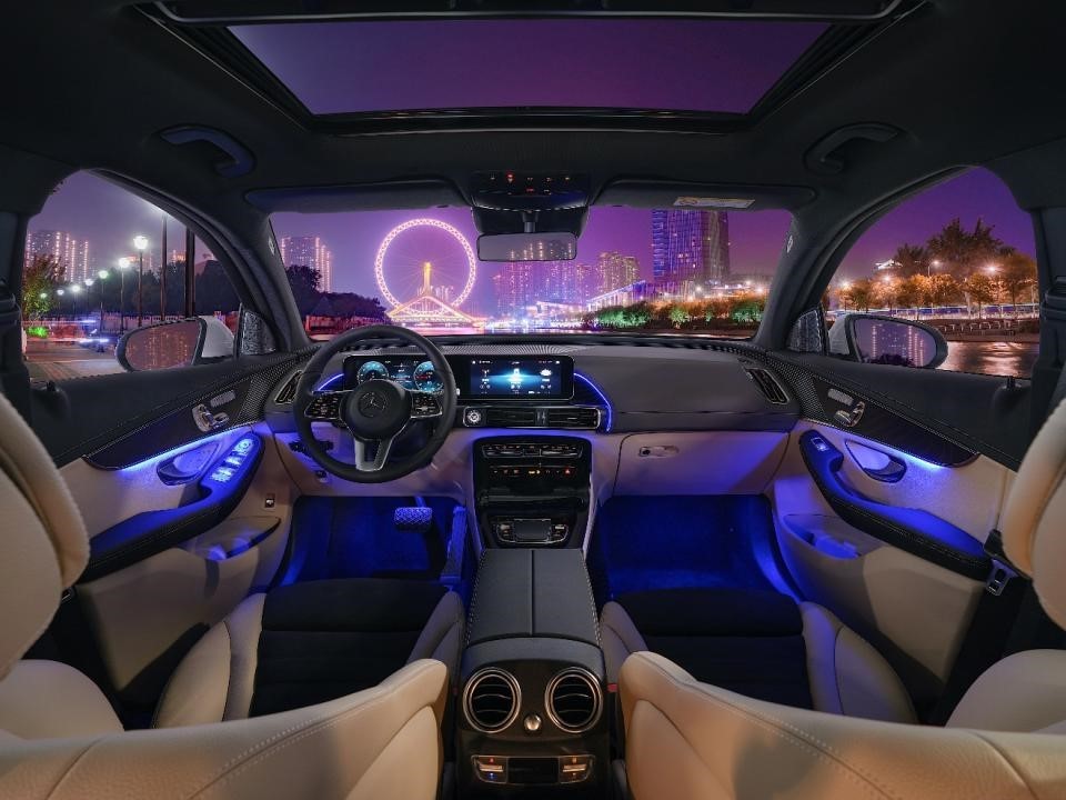 打开全新EQC纯电SUV的车门,用户可以感受到强烈的科技感。翼板轮廓采用不对称设计,打造出偏向驾驶侧的驾驶舱,中控台的整体风格使用了经典的环抱式设计。