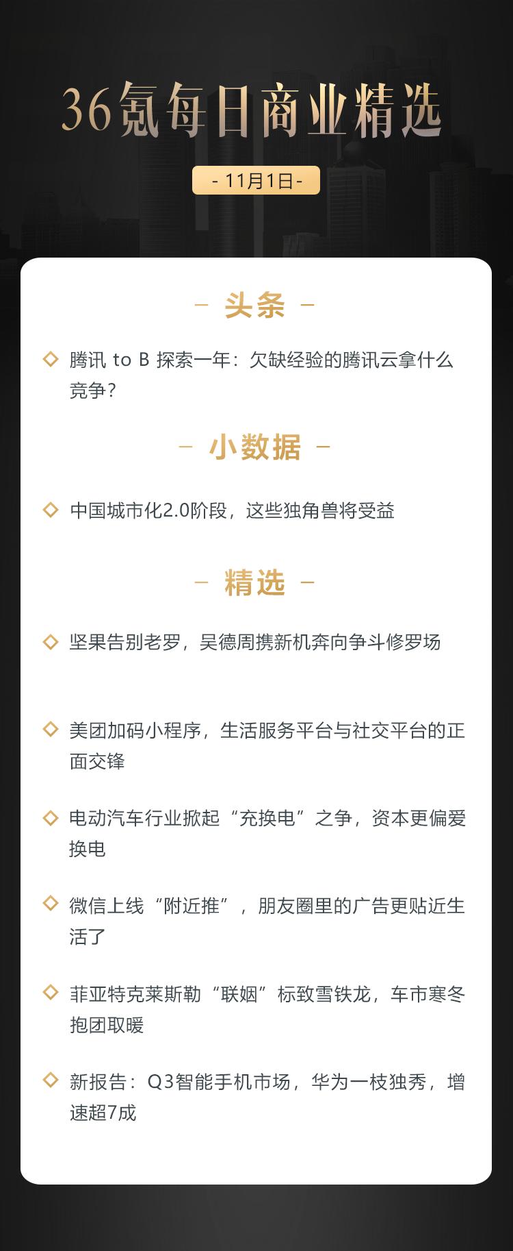 本文来自36氪付费栏目《36氪每日商业精选》——10月31日