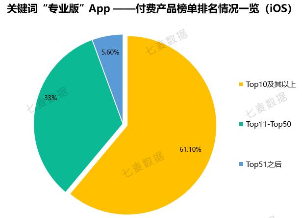 (关键词“专业版”App,付费产品榜单排名情况,iOS)