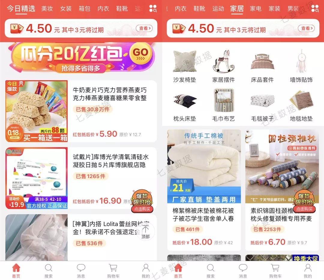 在电商领域当中,“特价版”App也紧跟着出现了,当然有时候它们是带着“返利”、“优惠券”的后缀。如文章开头提到的「淘宝特价版」,这款产品是在去年3月才上线AppStore,但其凭借各种红包激励、优惠券,以及背靠「淘宝」流量池,成功获得用户的关注,近一周iOS预估下载量破278w。不过「淘宝特价版」的推出,也颇有一种对标「拼多多」的意思。