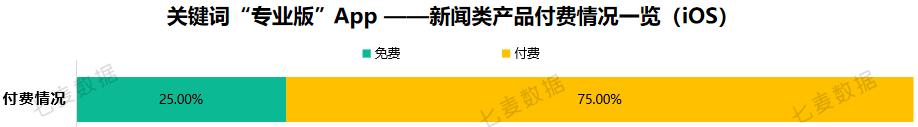 为此,不少开发者也将专业版设置为付费产品,或者在专业版中设置相关付费内容,此类现象在新闻类App专业版体现较为明显。七麦数据在AppStore中调取关键词“专业版”筛选出的60款产品中,75%的新闻类App专业版皆为付费产品,付费范围在1元—6元不等,其中83.3%的产品定价为1元。