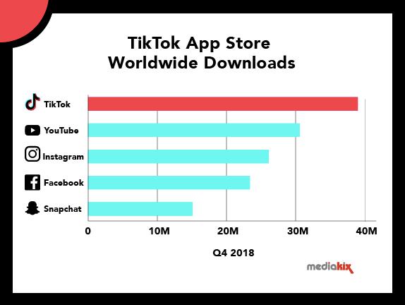 △TikTok在AppStore2018年第四季度的全球下载量名列前茅