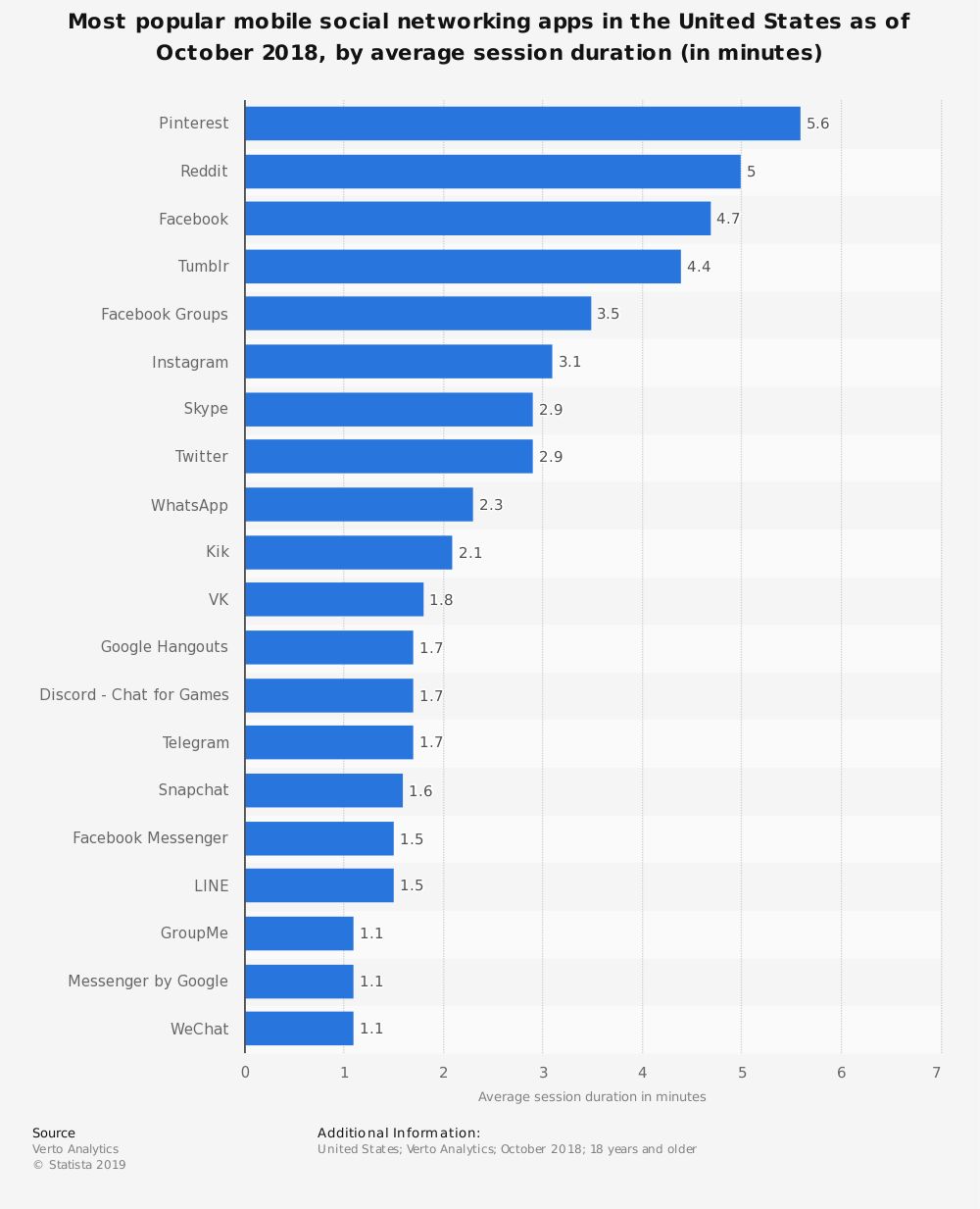 用户平均每天花在TikTok上的时间为52分钟,这在社交媒体平台中的排名非常高。截至2018年6月,美国安卓用户每天在Instagram上花费53分钟,在Facebook上花费58分钟,在Snapchat上花费49.5分钟。