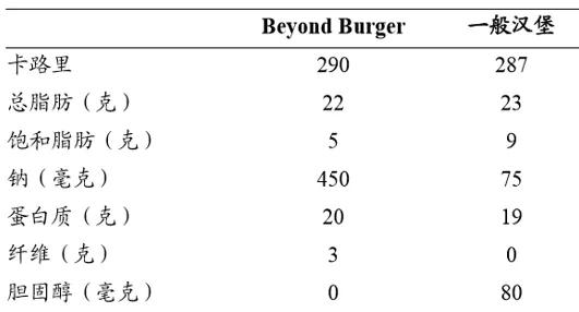 作为可持续的食物,人造肉的营养价值和食用风险肯定是能否持续发展的最重要因素。而根据目前BeyondMeat产品BeyondBurger和一般汉堡产品的对比可以看出,在营养价值上,植物肉有低胆固醇、较低水平的饱和脂肪和少量膳食纤维的优点。并且可以防止了很多人畜共患病和动物疫病的传播,如疯牛病、口蹄疫、非洲猪瘟等。
