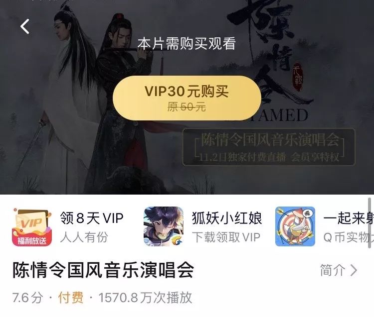 对于路人来说,已经是会员了,还要花30块钱才能看一场2小时的演唱会直播,委实有“哄抬物价”的嫌疑。但对于获得了一个夏天快乐的《陈情令》剧粉来说,这是将快乐延长的最好方式。一旦有了情感投入,性价比完全不在考虑范围。
