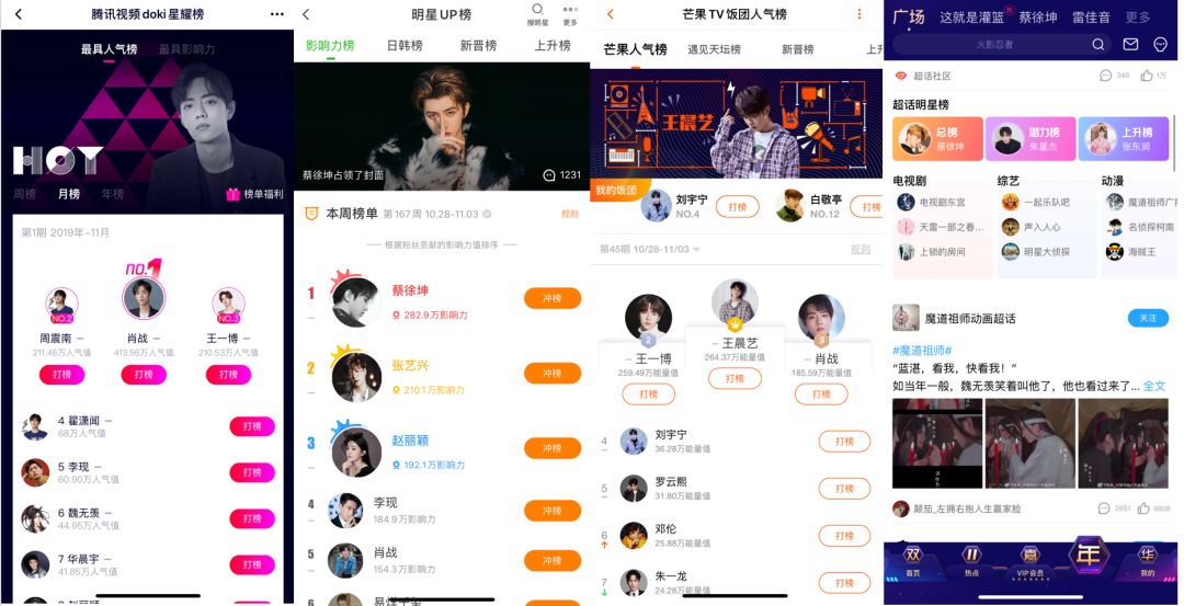 第一步,各大平台追求的仍是粉丝体量和活跃度。腾讯的doki星耀榜、芒果的人气榜和爱奇艺的明星UP榜,都是依托打榜机制,以心跳、米粒和加油棒的虚拟礼物构建评估体系,结合签到、浏览、观看等任务,充分调动粉丝战斗力,从而保证平台用户的活跃度。