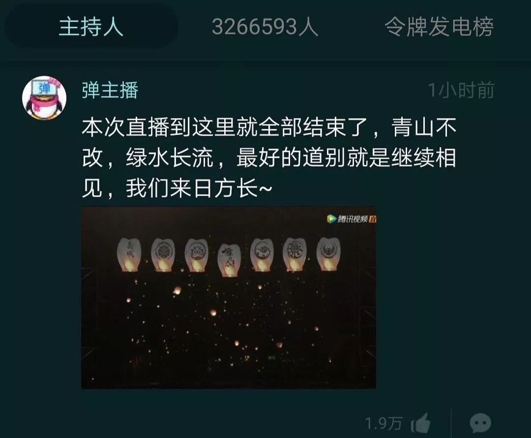 是的,仅在腾讯视频直播结束后几分钟后即可欣赏的重播版,没修音没细剪,最最要紧先剪掉这个膈应人的“后会无期”。