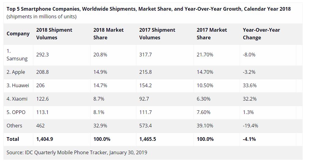 (2018年手机市场份额)