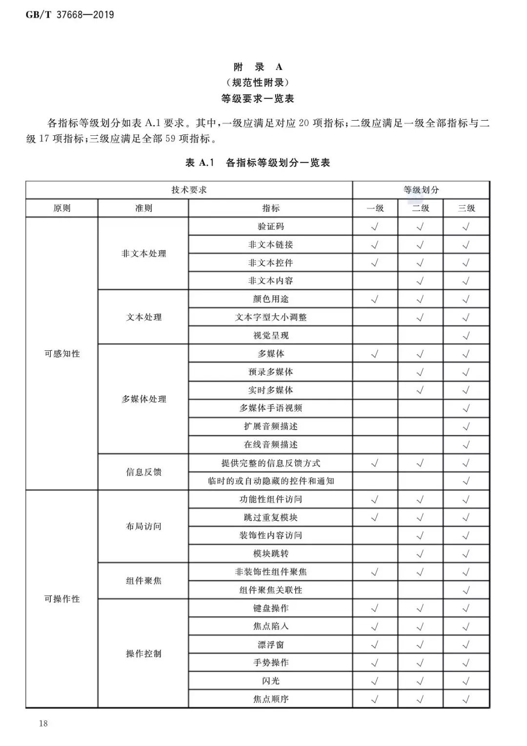 在即将于2020年3月正式实施的信息无障碍国标《GB/T 37668-2019 信息技术 互联网内容无障碍可访问性技术要求与测试方法》中,已经对互联网内容做出了较为细致实际的要求。