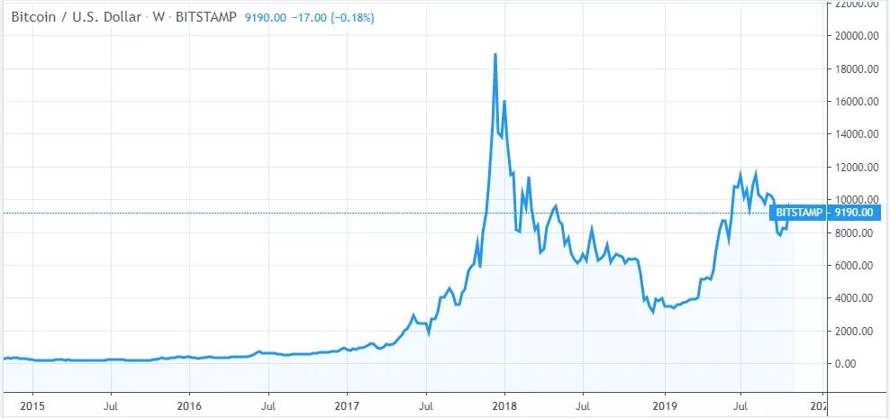 但若跟其强相关的比特币价格相比,却又远远不如,2017年比特币从1,000美元疯涨到20,000美元,整整20倍。