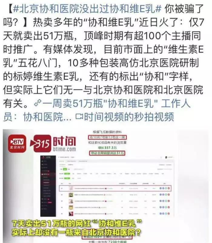 这种通过只投放中腰部的主播策略,还有完美日记、协和旗舰店、梵贞、兰蔻。大家注意下这个「协和旗舰店」,并不是北京协和医院旗下的店铺,微博上已经有人曝光了。