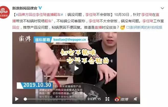 这起事件中,李佳琦在直播中推销一款不粘锅,并当场演示。结果助手往不粘锅里打了个鸡蛋,直接粘在了锅底,怎么铲也铲不下来。