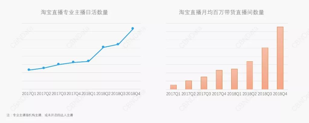 淘宝直播官方的报告数据显示,经过三年的发展,淘宝直播2018年带货超过1000亿,同比增速接近400%。同时,平台专业主播数量也在迅猛增长,每月带货规模超过100万的直播间有400多个。
