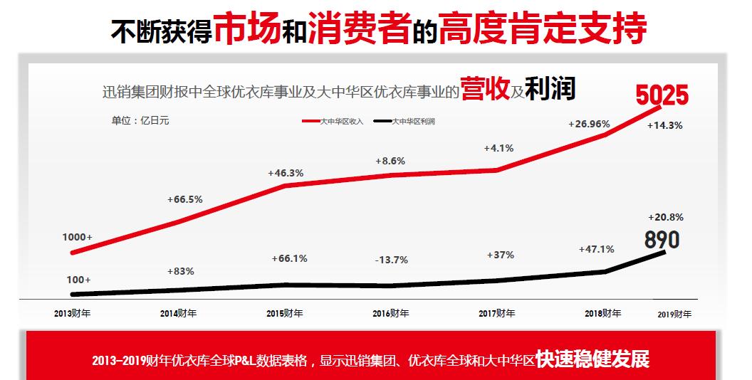 从2001年伦敦的4家门店开始,优衣库成长为世界范围内拥有3588家门店,销售额约2兆3千亿日元,零售规模世界第三的服装制造商。在日本连续20年通货紧缩的环境下,优衣库逆市而上,营业额增长160倍,利润增长1500倍。