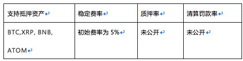借贷过程中大家比较关心的主要问题为支持抵押资产种类、稳定费率、 质押率、清偿算率等。目前,Kava支持抵押资产为BTC,XRP, BNB, ATOM,初始费率为5%,质押率和清算罚款率均为公开。