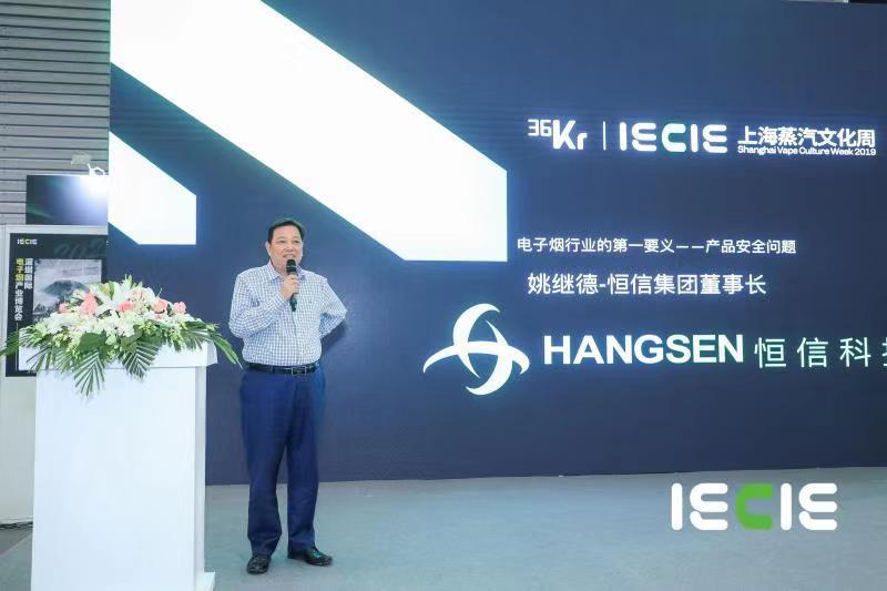 恒信集团是全球知名电子烟油生产商,其产品在全球80多个国家和地区均有销售。恒信集团董事长姚继德在演讲中表示电子烟的发展需要确保产品的使用安全,行业标准和规范是电子烟行业长期发展的必备条件。