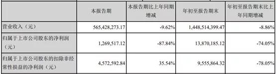 2019年前三季度,广博股份实现营收共14.48亿元,比上年同期增长-8.86%;净利润为1387.01万元,比上年同期增长-74.05%;扣非净利润为955.58万元,比上年同期增长-78.05%。