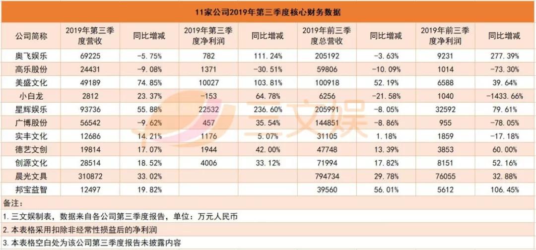 我们统计了11家上市或在新三板挂牌公司的2019年第三季度财务数据。