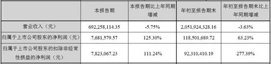 2019年第三季度,奥飞娱乐实现营收6.92亿元,比上年同期增长-5.75%;净利润为768.15万元,比上年同期增长125.30%;扣非净利润为782.30万元,比上年同期增长111.24%。