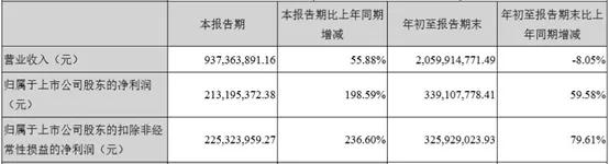 2019年第三季度,星辉娱乐实现营收9.37亿元,比上年同期增长55.88%;净利润为2.13亿元,比上年同期增长198.59%;扣非净利润为2.25亿元,比上年同期增长236.60%。