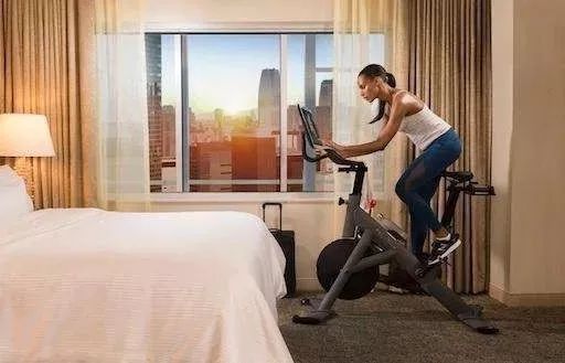 威斯汀酒店在美国的 31家酒店与动感单车 Peloton 建立了合作伙伴关系。客人可以预订配备动感单车的 WestinWORKOUT 客房,在客房实时观看或点播 Peloton 单车课程。